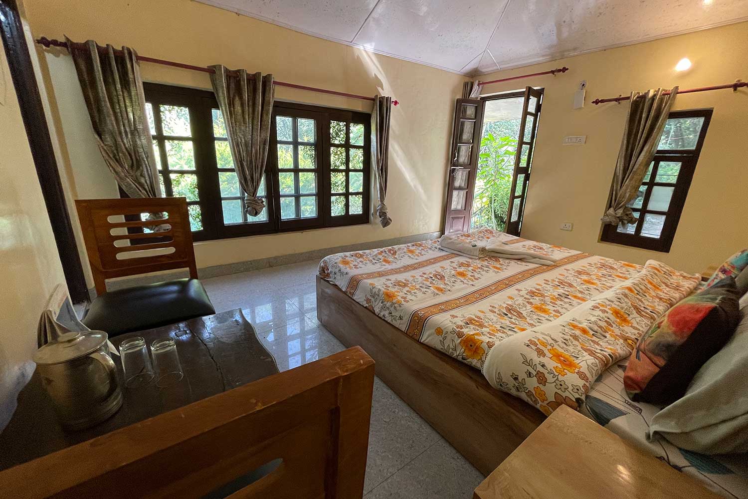 This privately owned birding camp surrounds a magical water body attracting over 100 bird species, along with barking deer, yellow-throated marten, and even leopards. Perfect for photographers, nature lovers, and seekers of peace and creative inspiration.